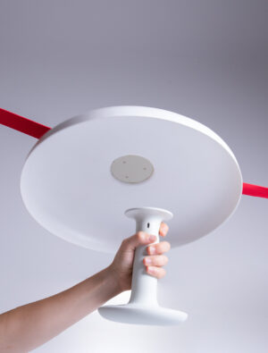 OUVA functions as both an overhead light and a floor lamp. In every position, it ensures even, glare-free illumination. Thanks to a magnetic mechanism, the light source can be attached to the lampshade or, when flipped, placed on a flat surface—making it easy to carry wherever needed.