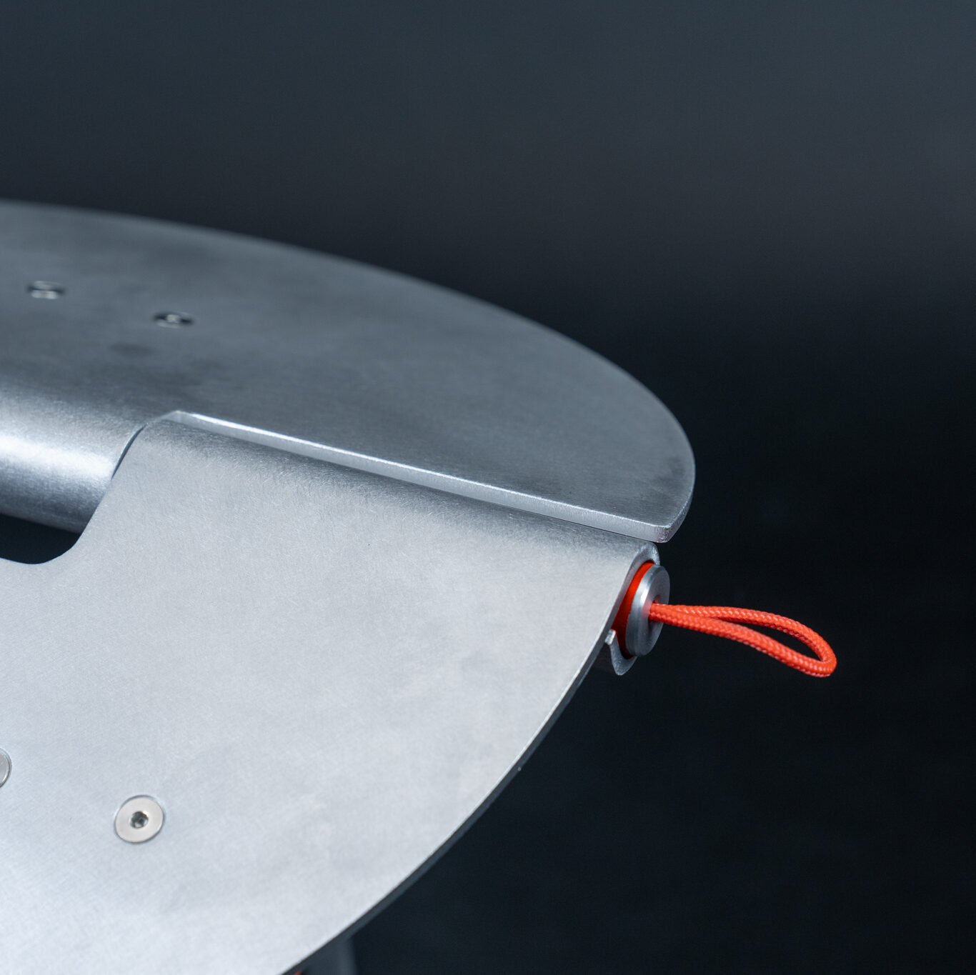 Aluminum was chosen for the construction – a lightweight, durable, and fire-safe material that is ideal for manufacturing from sheet metal. The hinges are an integral part of the design and are created directly from the material: by rolling the edges of the sheet metal, stable connections are formed that not only enable the folding function but also create an ergonomic grip when the stool is folded. An integrated mechanism within the hinge securely locks the seat in both the unfolded and folded positions. By pulling on a tab, the mechanism is released, and the stool can be unfolded or folded back up.