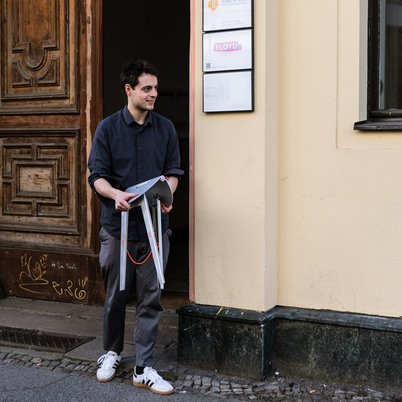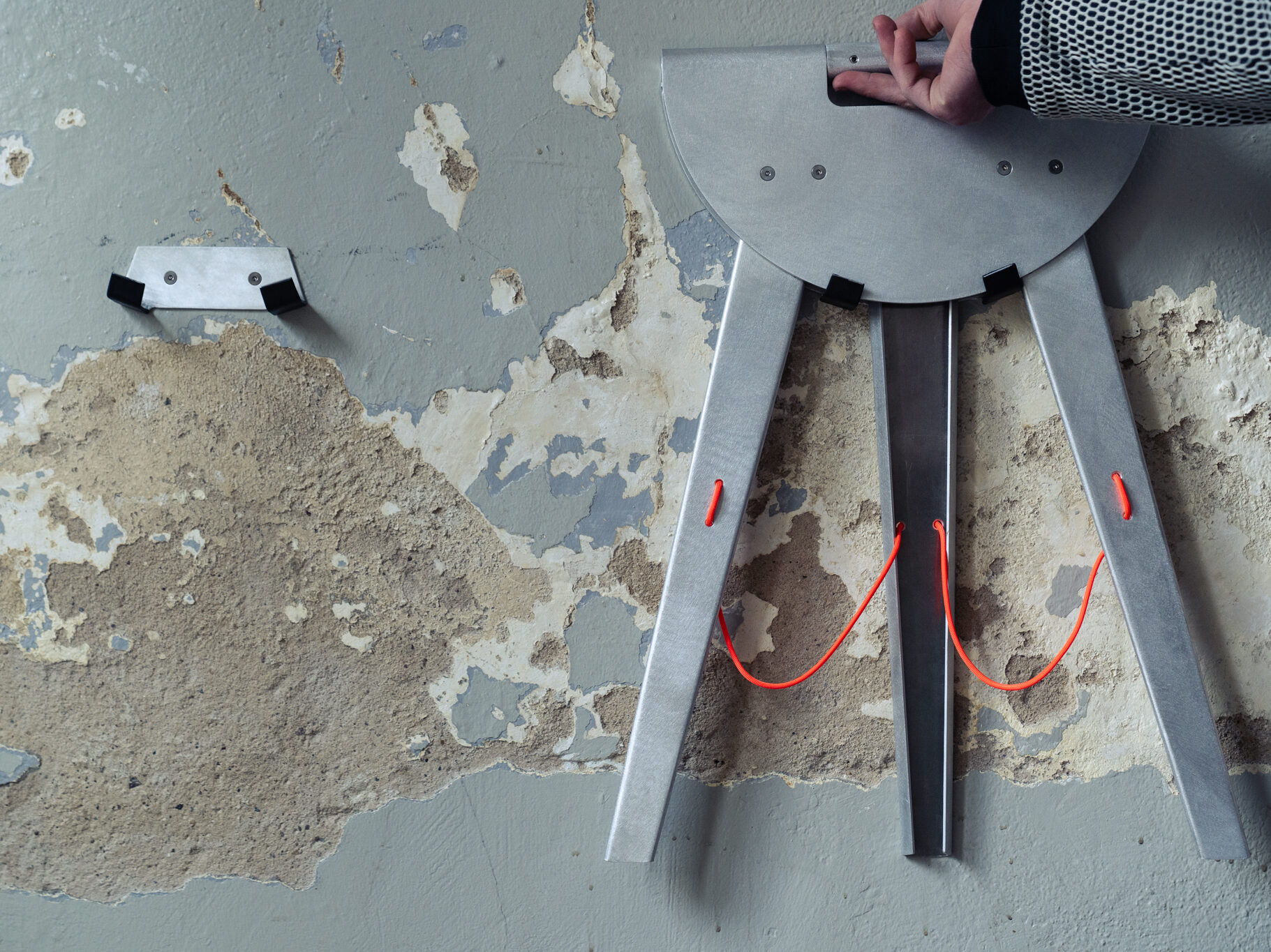 smal schafft eine niedrigschwellige Einladung: Im Hausflur aufgehängt, nimmt der klappbare Hocker kaum Platz ein und steht jederzeit bereit. Bewohner*innen können ihn einfach ausklappen und damit bestehende Schwellenräume beleben. Ohne große Inszenierung entsteht die Möglichkeit, kurz zu verweilen, ins Gespräch zu kommen oder informelle Gemeinschaft entstehen zu lassen.