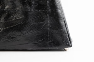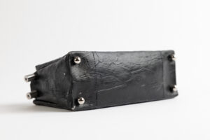 The project explores an object that requires defacement to become usable. The clutch bag begins as a flat surface hardened by a coating. Its first use is an act of breaking — a deliberate gesture that creates transformation: from rigid material, through emerging cracks, to an opened volume. The user leaves unique marks on the object, and the break becomes a private aesthetic reflecting the moment of activation.
