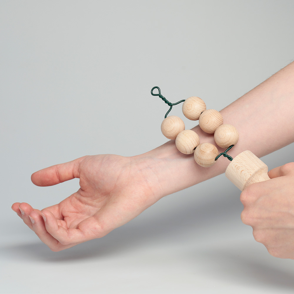 Designed to be rolled gently along the body, across the arms, the forehead, the back of the neck. The beads glide across the skin, offering a quiet, tactile way to relax and reconnect with your senses. A tool for contact, not with others, but with yourself.