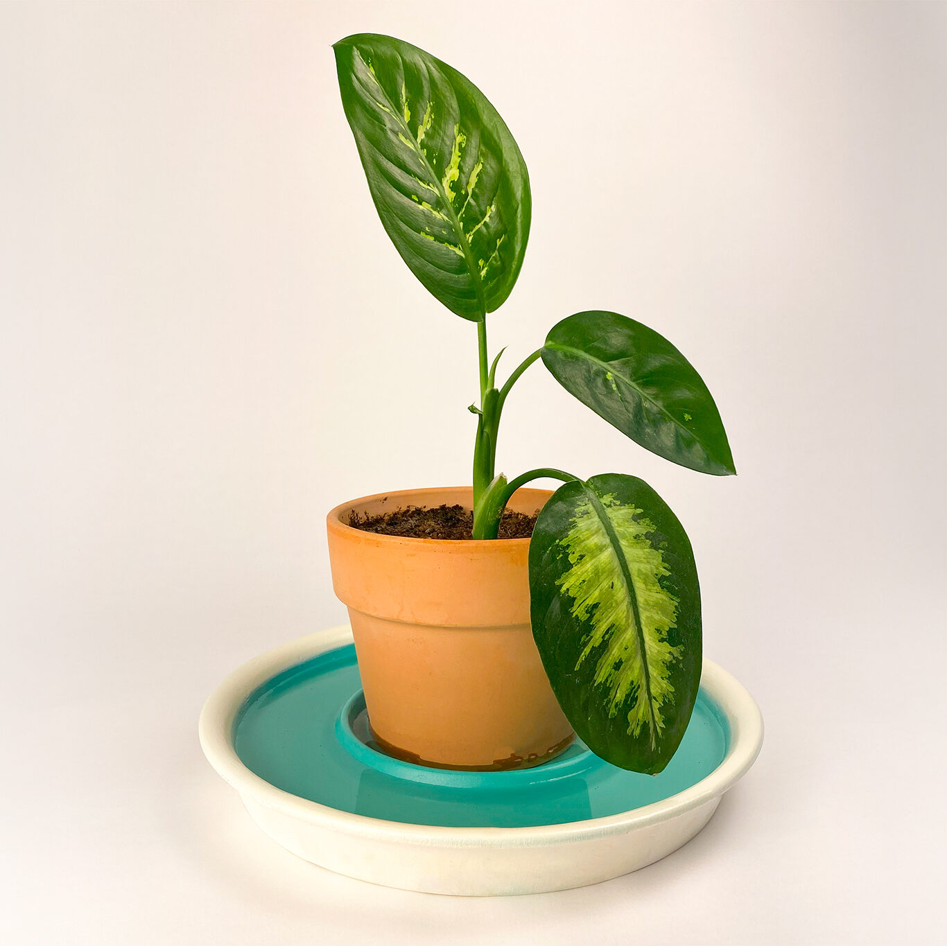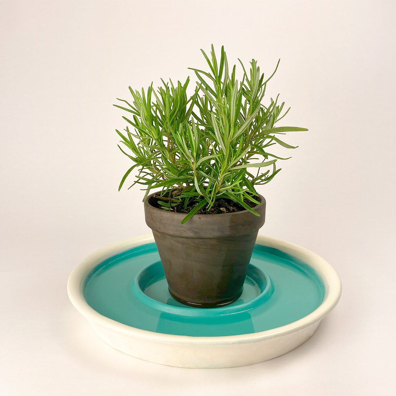Das Design folgt einem inklusiven Ansatz: Die Form ist verständlich, selbsterklärend und ohne technische Hürden. Durch eine zweifarbige Glasur lässt sich intuitiv ablesen, bis wohin das Wasser gefüllt werden muss, damit der Untersetzer gefüllt wird. Verschiedene gängige Topfgrößen passen in die zentrale Aussparung, sodass Fontutti flexibel einsetzbar ist – ob auf dem Balkon, im Hof oder im Garten.