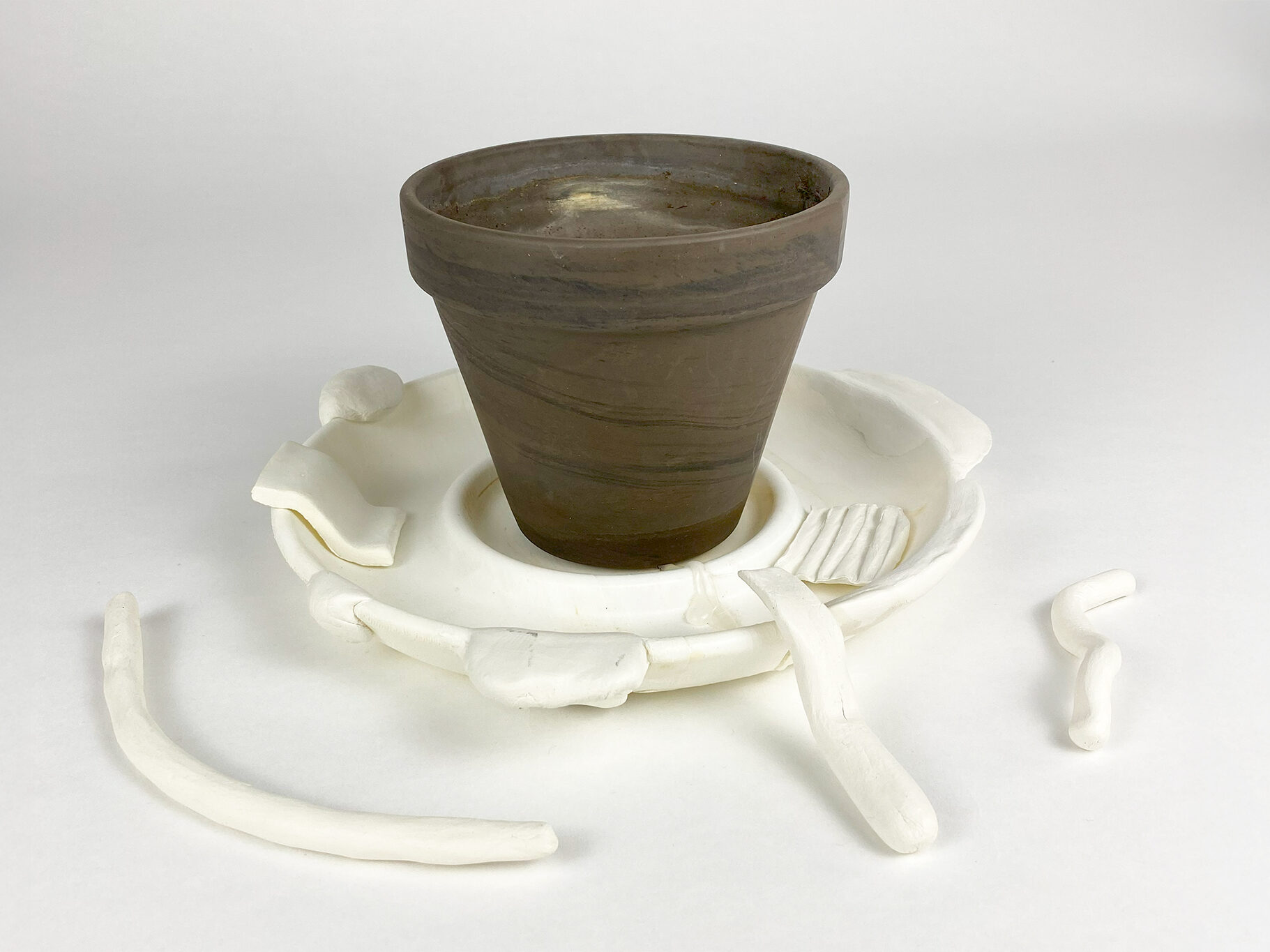 Fontutti is produced at the inclusive DIM workshop, where people with and without disabilities work together. The production process uses a turning spindle – a method in which clay is placed into a plaster mould and shaped by a rotating profile. This profile tool was specially designed and 3D-printed for the project. The material used is fired clay: durable, weather-resistant, and recyclable. Fontutti is a functional object – and at the same time, a gesture of care: for plants, animals, and fellow humans.
