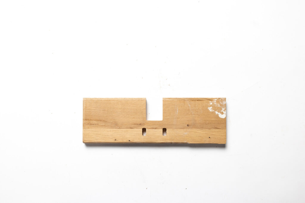 Für die Herstellung der Gelenknegative verwendete ich das Shaper Tool, eine handgeführte CNC-Maschine. Ich habe ein Grasshopper-Skript entwickelt, das SVG-Dateien für das Shaper Tool erzeugt, indem ich einfach die Breite und Dicke jedes Materialstücks eingebe. Dadurch konnte ich mit kleinen und unregelmäßigen Holzstücken arbeiten, die nicht in einen herkömmlichen CNC-Arbeitsablauf passen würden. Das Projekt macht sich die Ungleichmäßigkeit von Abfall zunutze, dessen Material eine Geschichte hat – es bietet etwas Einzigartiges, das Möbel aus neuen Materialien nicht nachbilden können.