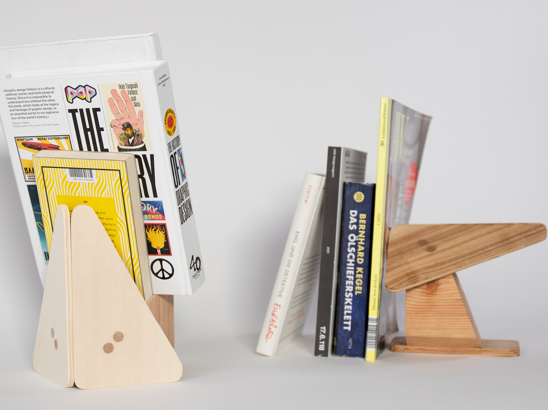 The concept of the bookend revolves around encouraging the completion of reading books rather than leaving them closed and unread. The design allows for an open book to be rested on the bookend, supporting it in a way that invites continued engagement. Additionally, when flipped, the bookend can hold multiple books upright.