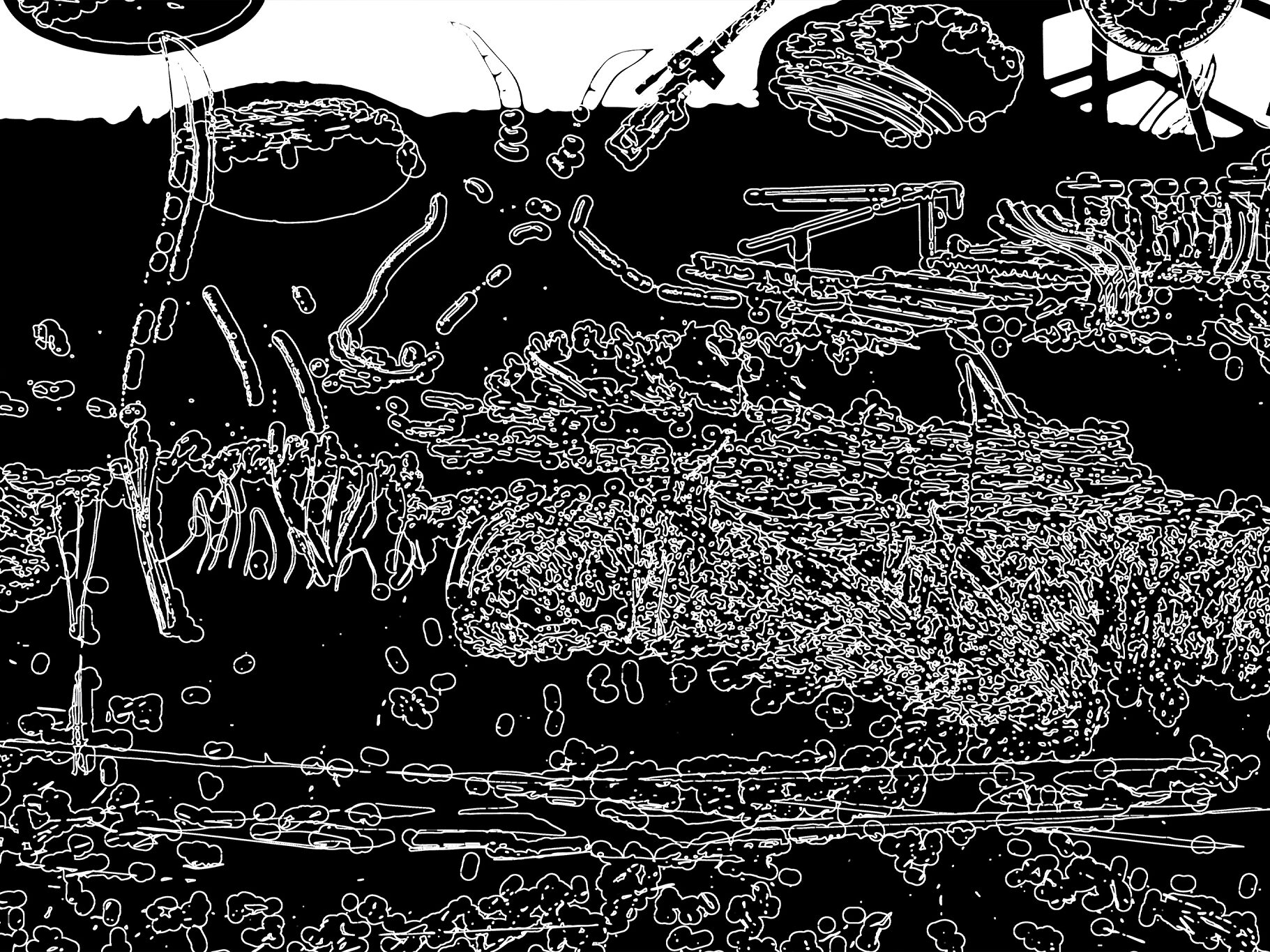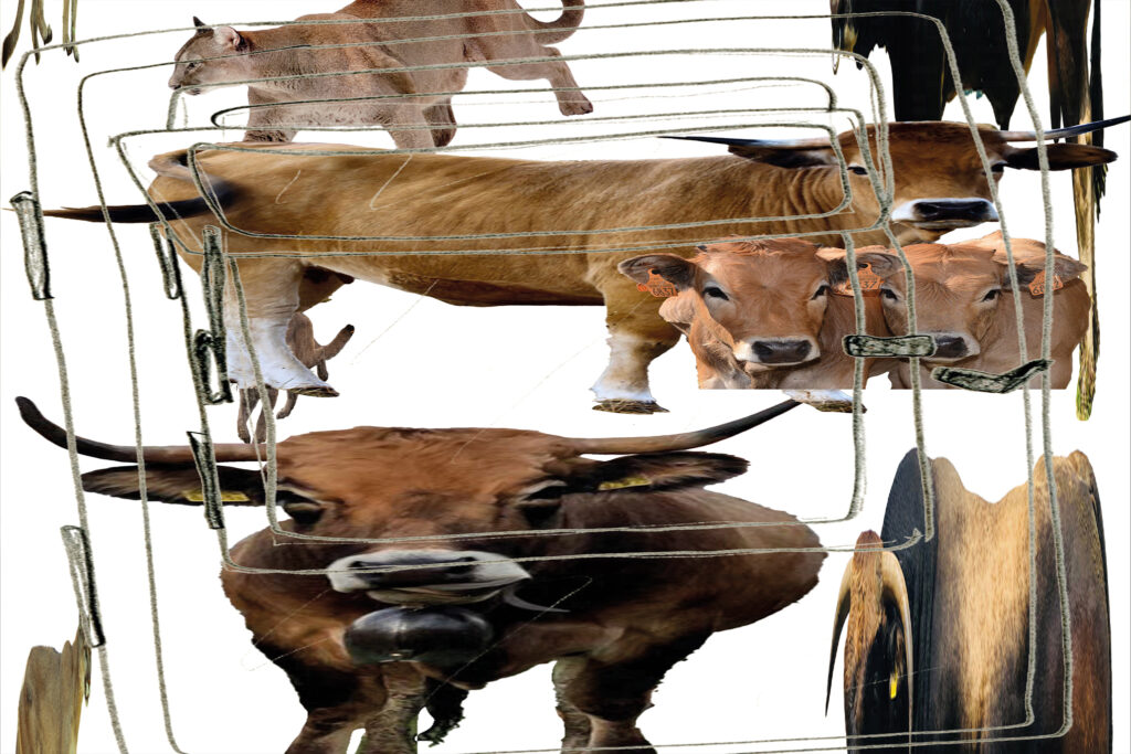 ALLE KÜHE DUCKEN SICH ist eine Übersetzung von Träumen in Muster und physische Objekte. Anhand der Dokumentation zahlreicher Träume wurde eine Auswahl visualisiert und abstrahiert. Dabei entstand eine Sammlung aus Collagen, die als Grundlage für die weitere Entwicklung ins Materielle dient. Aus unterschiedlichen Materialien wie Wachs, Stoff und Aluminiumblech wurden drei finale Objekte realisiert: Wachsfiguren, transparente Vorhänge mit hellgrauen Drucken und ein kleiner Alu-Schrank mit Prägungen. Der Prozess nimmt die Fragmentierung des Träumens auf, die sich in Abstraktion, fehlender Erinnerung und der Materialwahl während der Umsetzung zeigt. Dabei wird untersucht, wie das Unbewusste in eine greifbare, körperliche Form übersetzt werden kann.