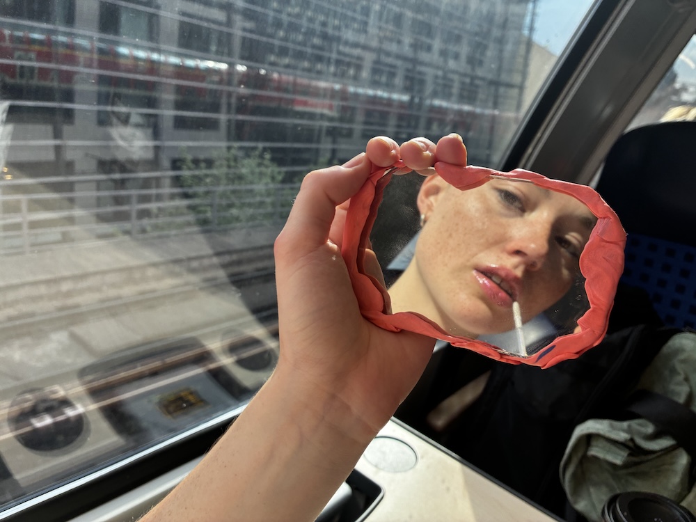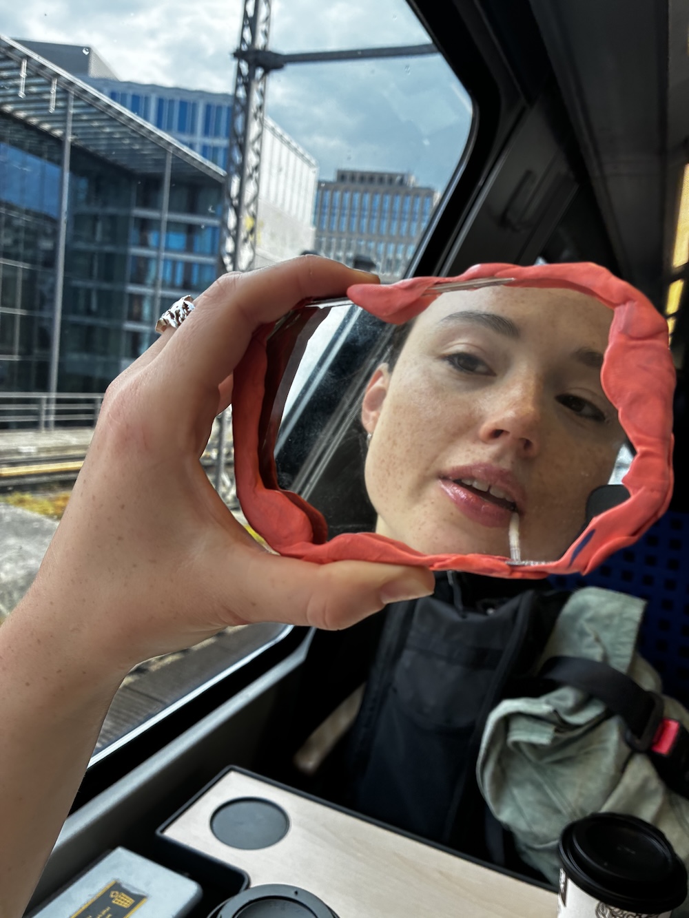 The object I created during the short project “melt & make” is a little pocket mirror which allows you to carry your make up utensils with you. The smartphone like shape makes it blend in seamlessly, while the formcard frame gives it an individualistic touch and makes it an unique object. The possibility to change the attached utensils enables the user to mount all different sizes of equipment and makes it customizable with different shapes and colors.
