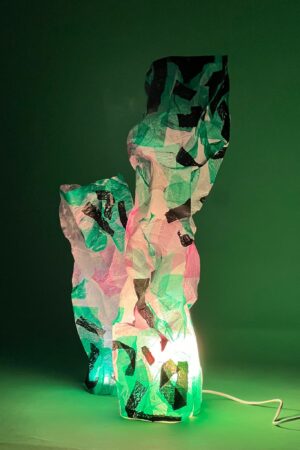 Polyfuse is a project that explores the issue of single-use plastic bags. Though recyclable, many end up in parks, streets, or water and those we save often get forgotten in drawers. Polyfuse fuses these thin plastics with heat, creating sturdier, colorful membranes with unique shapes and patterns. Any HDPE or LDPE plastic, like ripped trash bags or bottle packaging can be used. It’s about reimagining waste, giving it new purpose and visibility. I chose to use the material as a light cover to literally and symbolically shed light on this transformation, turning forgotten waste into something present, and positive within the home.