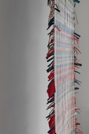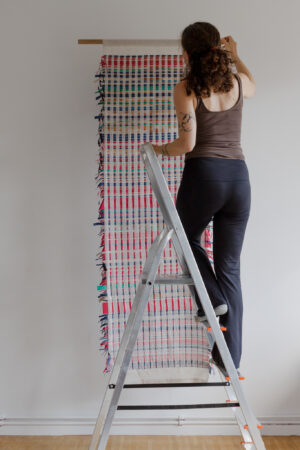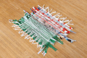 This project transforms discarded polyester advertising banners into woven textiles visualizing women’s parliamentary representation worldwide. Non-recyclable promotional materials gain new life through ancient feminine craft, exploring the intersection of advertising culture and weaving traditions. Using custom software, I convert global parliamentary data into weaving patterns and laser-cutting templates. The textiles encode each country’s percentage of women in parliament through color and pattern, creating beautiful fabrics whose data remains hidden without a legend. This invisible information system reflects women’s power – their ability to create beauty in homes and communities through skilled hands, despite inequality in high-level representation. The project celebrates quiet feminine strength while questioning contemporary gender dynamics.