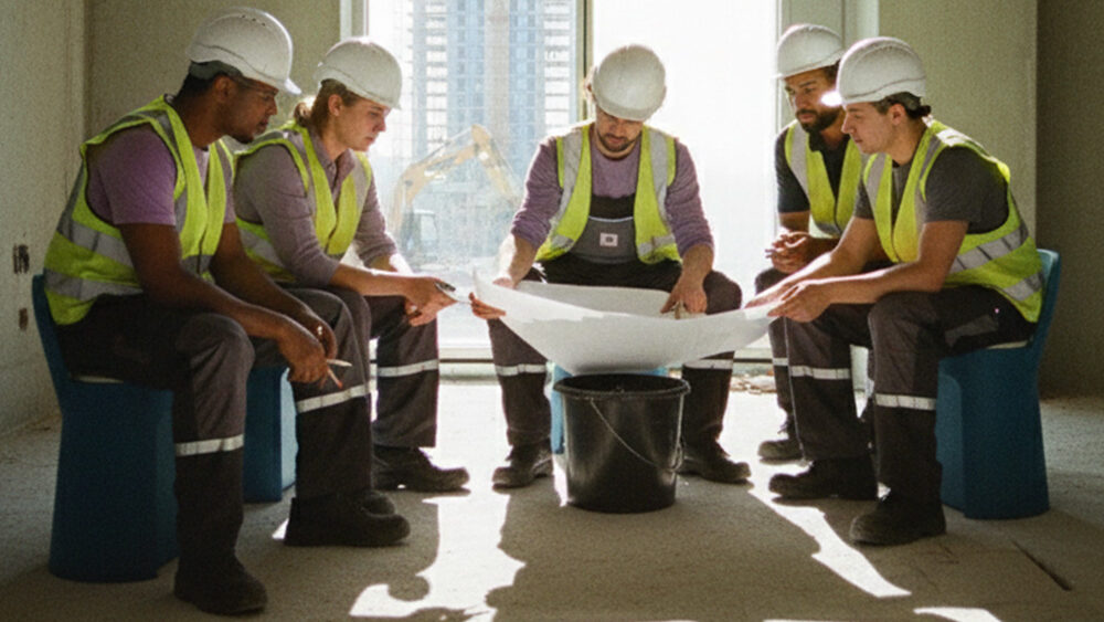 The master’s thesis examines how design can make construction sites more humane. Drawing on a European context and specific German case studies, it notes that worker well-being is often neglected in the tough working environment.