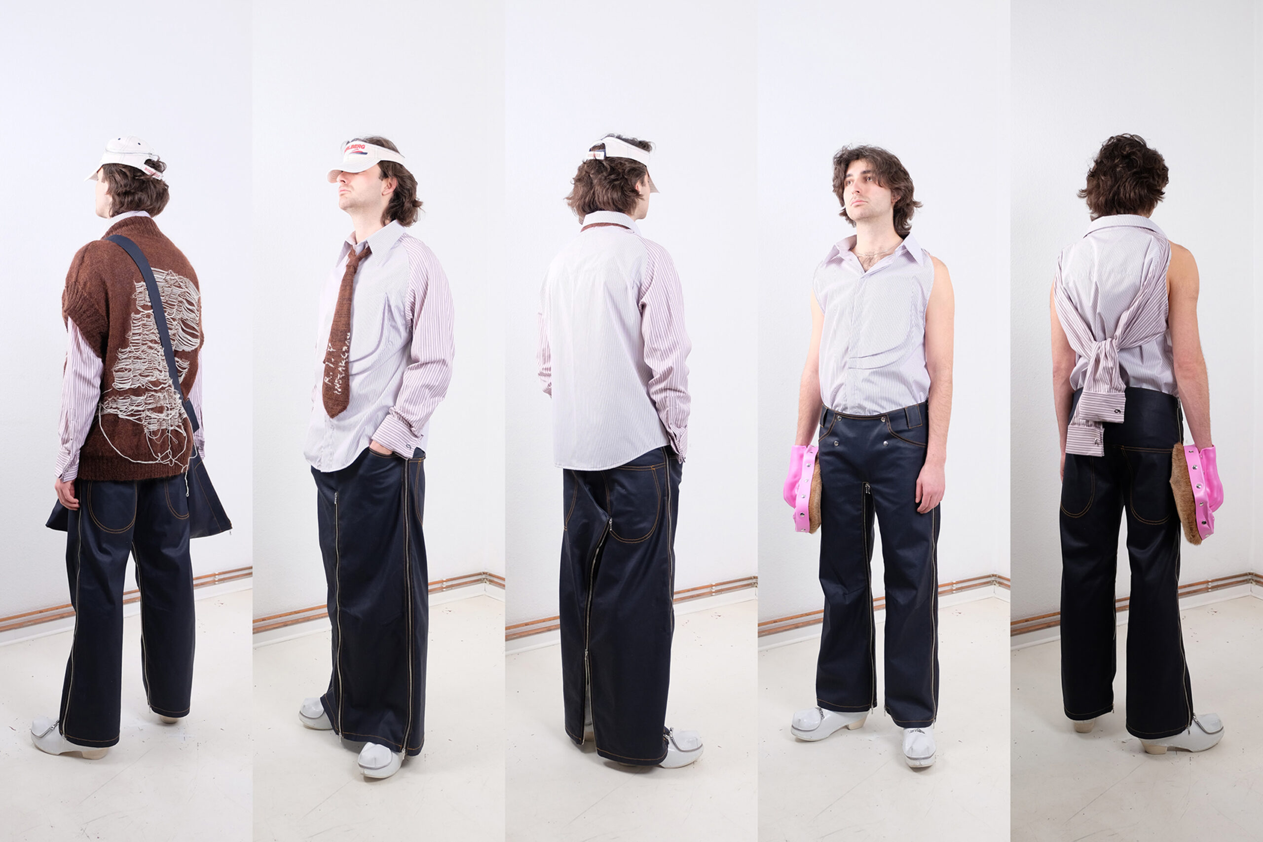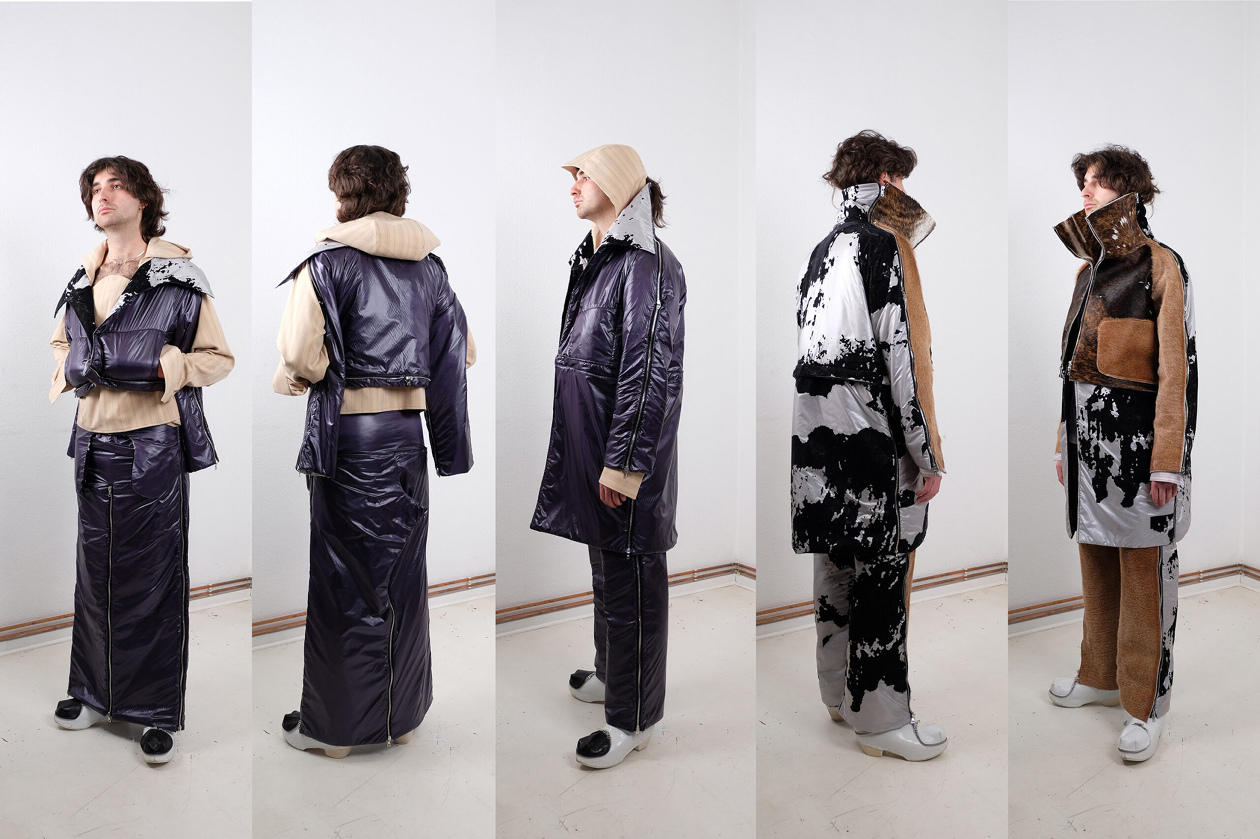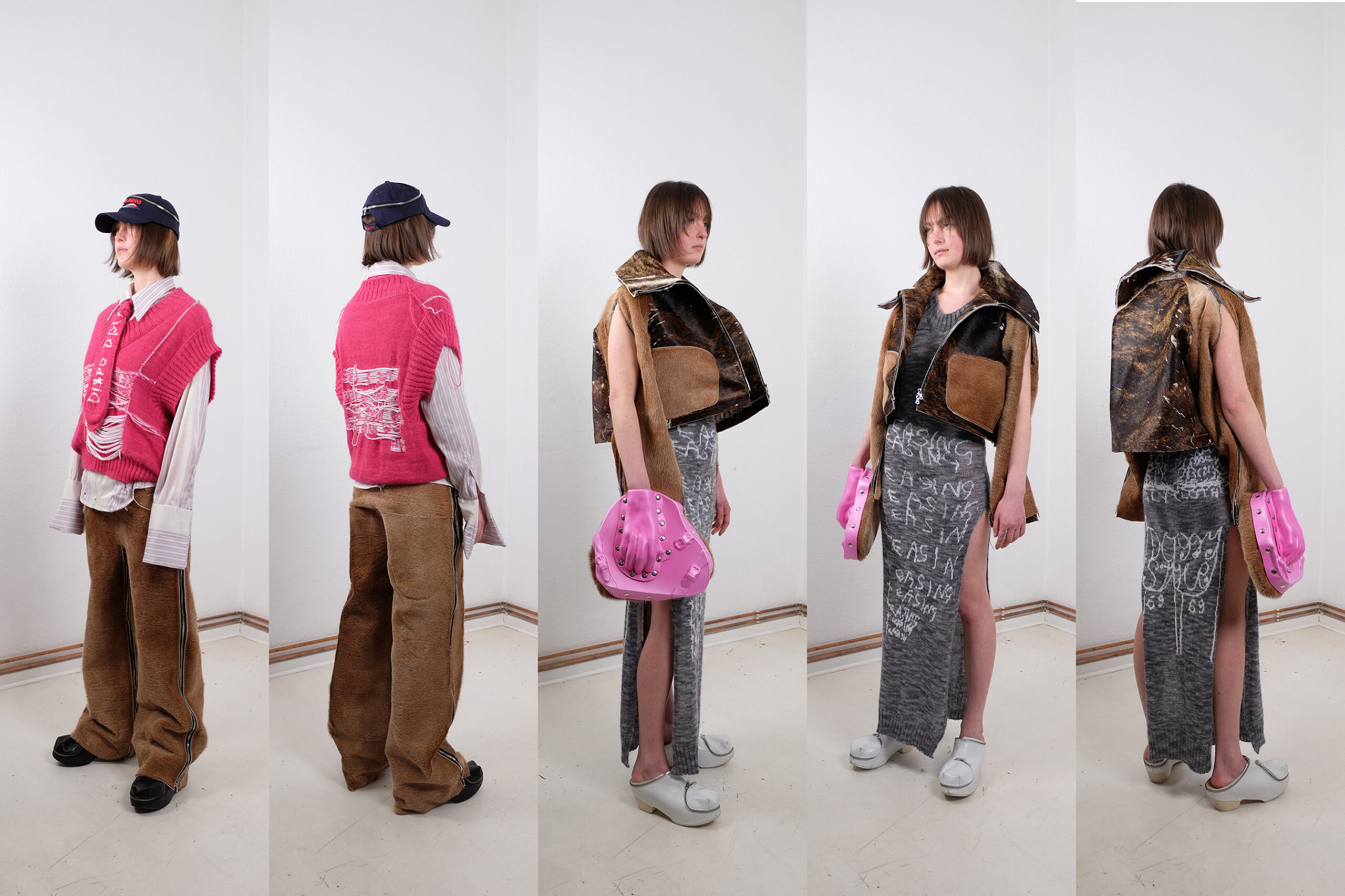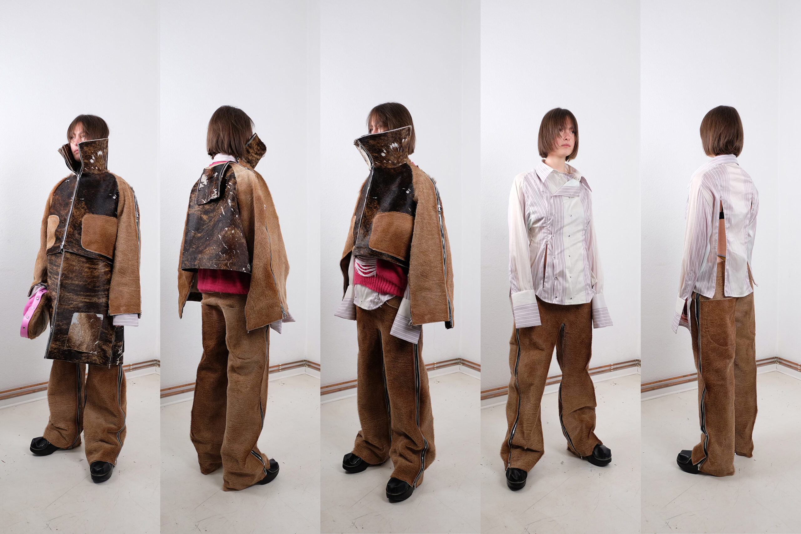 Tradition und Tracht treffen auf Urbanität und Schnelllebigkeit. Inspiriert von den Kollisionen verschiedener Umgebungen im Raum Berlin und Vorarlberg, ist die Kollektion eine Hommage an die traditionelle Bekleidung. Neue Materialien, technische und funktionale Lösungen werden mit einer generationsübergreifenden Designsprache kombiniert, um unseren Alltag auf nachhaltige Weise zu erleichtern. Die Kombination von Gegensätzen schafft eine generationsübergreifende Ästhetik. Im Vordergrund steht immer die Zweckmäßigkeit, die durch Mehrfachverwendung und Kombinierbarkeit entsteht. Es werden hybride Formen geschaffen, um Accessoires mit Kleidung zu kombinieren. Der Schwerpunkt liegt auf der detaillierten handwerklichen Verarbeitung und der Auswahl der Formen und Stoffe.