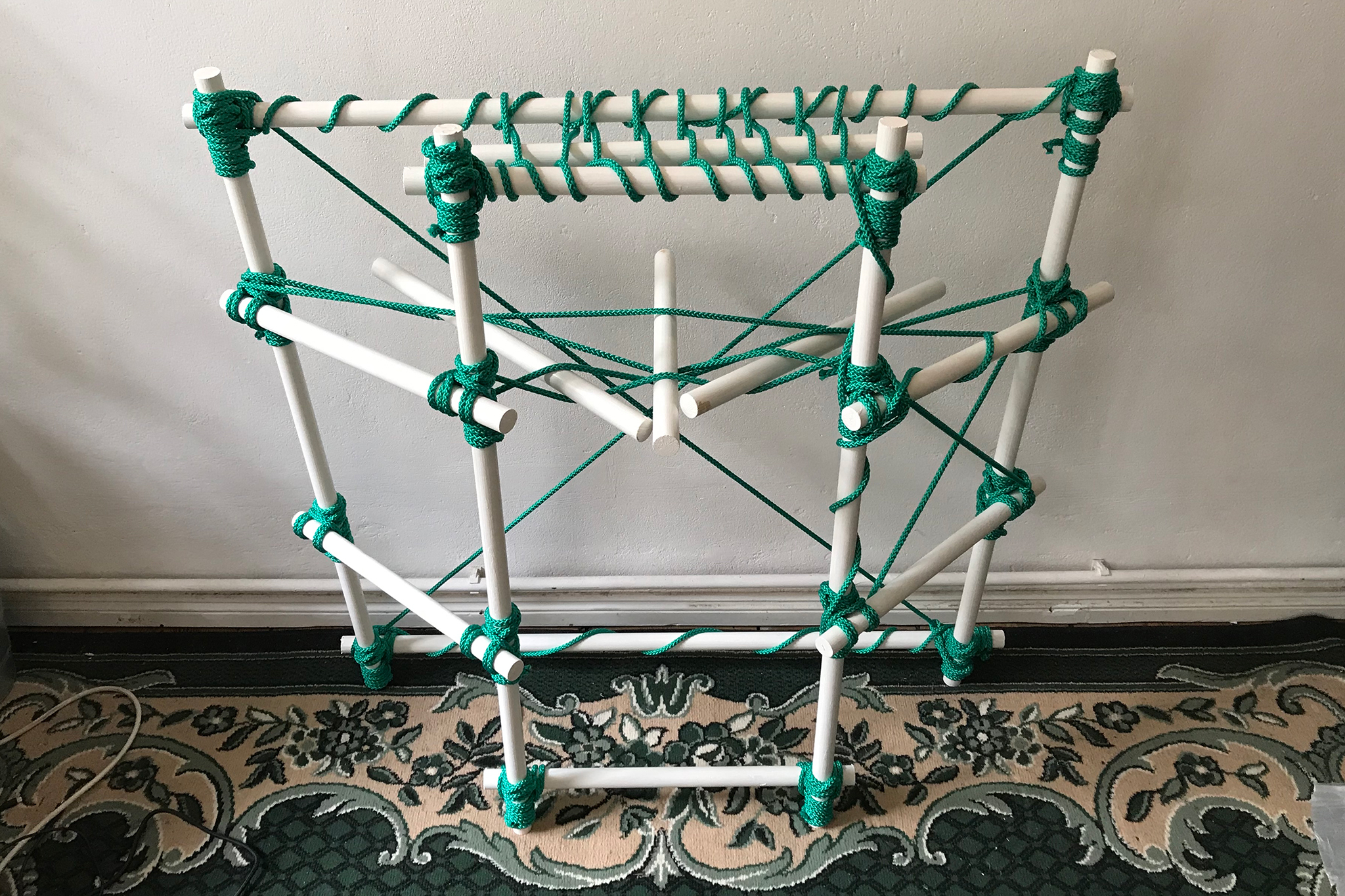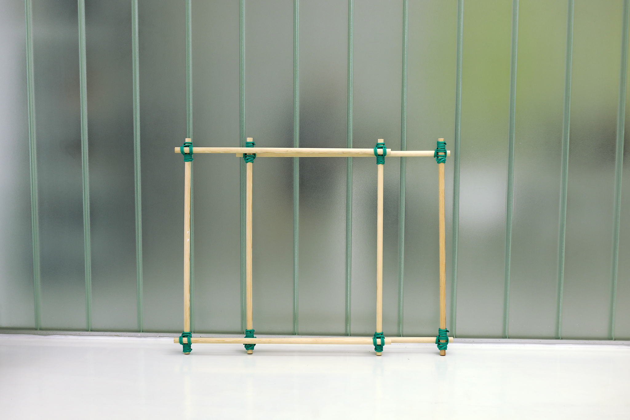 Während des letzten Lockdowns, als wir alle mit vielen Lebenseinschränkungen konfrontiert waren, mussten wir uns verschiedenen neuen Herausforderungen stellen. Dieses Projekt entstand aus der Notwendigkeit heraus, uns an diese Situation anpassenzu müssen und um uns dann neue kreative Wege vorzustellen. Es sieht eine Bauweise vielseitiger Möbel vor, die trotz einiger Einschränkungen erreichbar wären. Zunächst wurden die wirtschaftlichen Auswirkungen berücksichtigt indem nur mit günstigen und leicht zugänglichen Materialien – Holzstäben und Seilen – gearbeitet wurde. Dasselbe Material wird wiederverwendet um andere Möbel mit denselben Materialien zu bauen. Dies bietet unterschiedliche mögliche Konfigurationen. Außerdem fordert der Bauprozess keinen Zugriff auf viele Werkzeuge, auf Materialien zu Hause oder auf Maschinen, wodurch sich an die neue Lebenssituation angepasst wird.