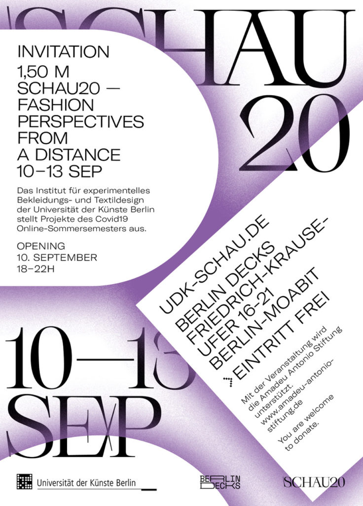Fashion aus Tischdecken: Modedesign-Studierende der UdK Berlin zeigen Ergebnisse des Online-Semesters Aus einem Nachlass gespendete, hochwertige und zum Teil aufwändig bestickte Tischdecken dienten für die Studierenden des Instituts für experimentelles Bekleidungs-und Textildesign der Universität der Künste Berlin als gemeinsame Basis für ihre Projekte des vergangenen Sommersemesters: Aus den alten Materialien ließen sie in einem semesterübergreifenden Projekt Neues entstehen. Die Ergebnisse zeigen die angehenden Modedesigner*innen unter dem Titel „1,50 m Schau20 – fashion perspectives from a distance“ vom 10. bis zum 13. September in den Berlin Decks in Berlin-Wedding. Außerdem erzählt die Ausstellung aus der Perspektive der Professor*innen und der Studierenden vom vergangenen Semester, das wegen der Corona-Pandemie im Zeichen von häuslicher Isolation und Online-Lehre stand. Die Ausstellungsstücke werden am 13. September verlost. Auf Initiative der Studierenden werden zudem Spenden für die Amadeu Antonio Stiftung gesammelt, die sich für eine demokratische Zivilgesellschaft engagiert. So schließt sich ein Kreislauf aus Alt und Neu, aus Nehmen und Geben – aus Vergangenheit und Zukunftsperspektive.