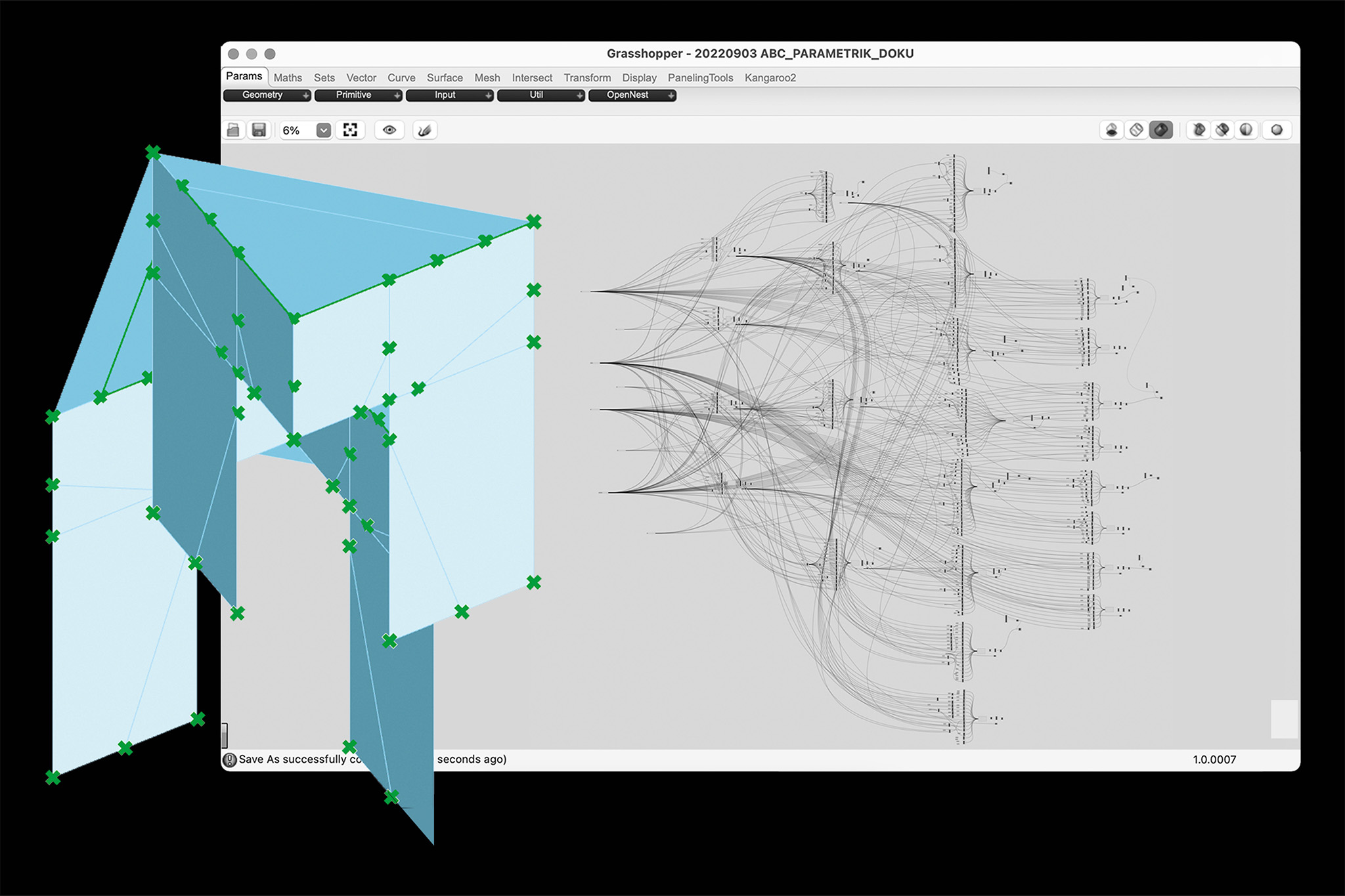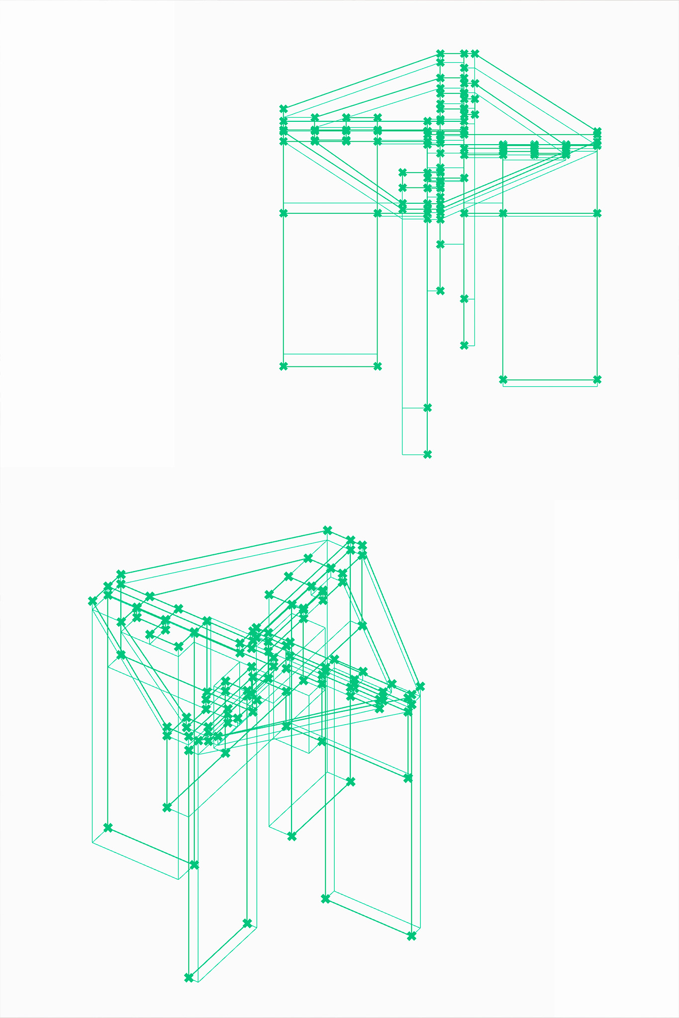 Dafür wurde ein digitales System entwickelt, welches den Umgang mit verschiedenen Plattenstärken und Formaten ermöglicht. Das exemplarisch entstandene Möbelstück wurde dafür nicht 3D konstruiert, sondern mithilfe von Rhino-Grasshopper programmiert. Die dadurch erzielte Parametrik ermöglicht ein sich gegenseitiges Anpassen der einzelnen Möbelteile, je nach Plattenstärke. Ein veränderter Nesting-Algorithmus ermöglicht ausserdem die Verwendung nicht rechteckiger Restplatten.