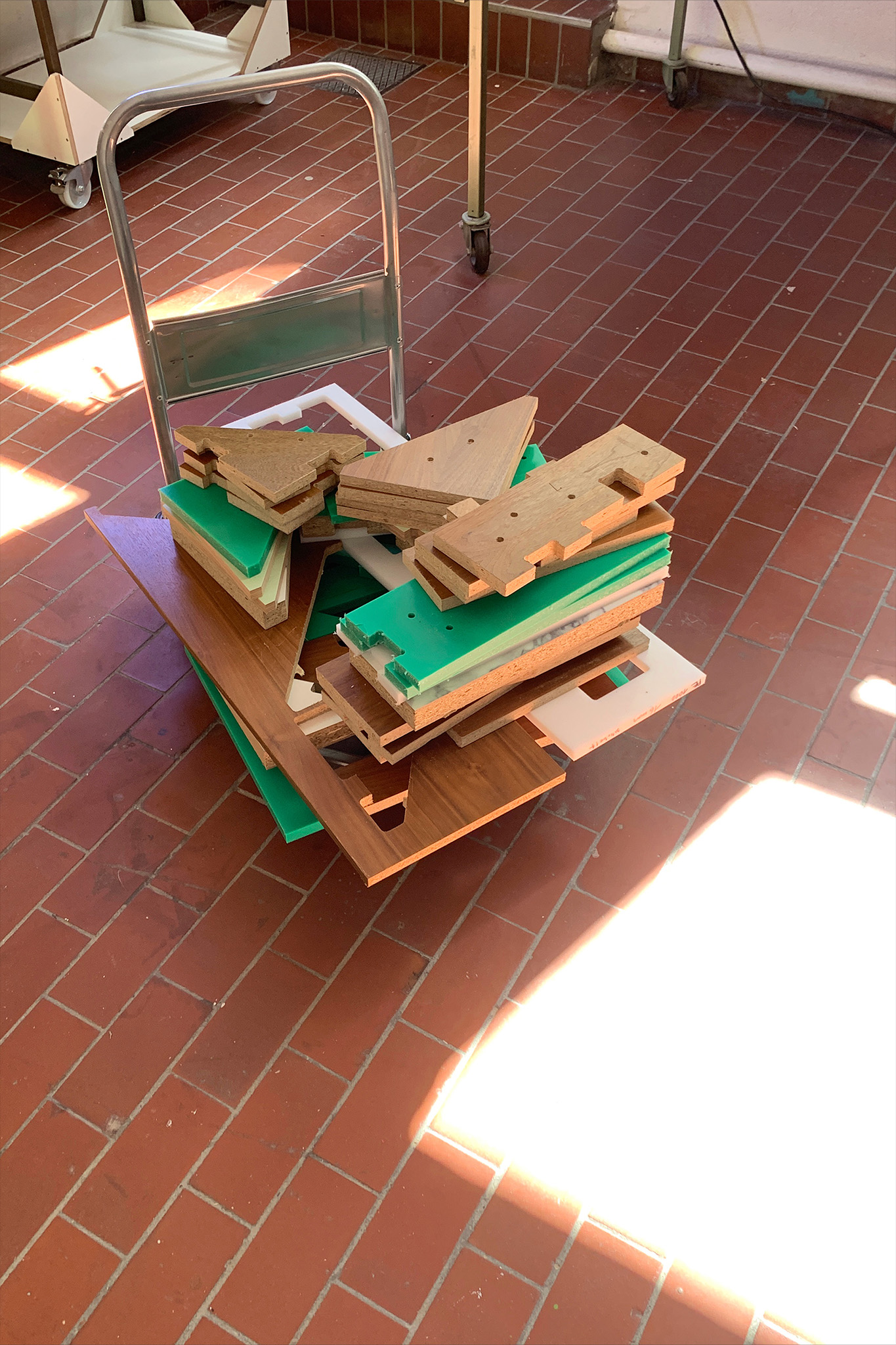 Darum versucht dieses Projekt die Verwendung von Abfall- und Verschnittplatten für die serielle Möbelproduktion zu vereinfachen.