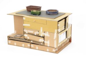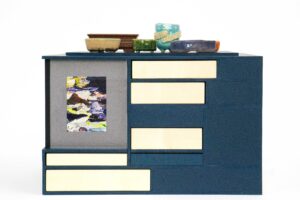 Daraus entstand ein exemplarisches Möbelstück, das den Umgang und die Auseinandersetzung mit diesen wertvollen Dingen zeigt und eine Lösung vorschlägt, die diese eigentlich verdient haben. In vielen offenen und versteckten Fächern finden die vielen Einzelteile und Objektgruppen ihren Platz und laden zum Entdecken und Kennenlernen ein. Gleichzeitig wird man unweigerlich mich als Person kennenlernen, da die Dinge so sehr für mich, mein Umfeld, meine Erfahrungen und Interessen stehen.