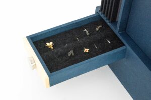 The result is an exemplary piece of furniture that shows how these valuable objects are handled and dealt with and proposes a solution that they actually deserve. The many individual parts and groups of objects find their place in many open and hidden compartments and invite you to discover and get to know them. At the same time, you will inevitably get to know me as a person, as the objects represent me, my environment, my experiences and interests.