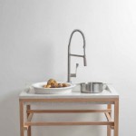 Plat‘eau ist ein Waschtisch, der viel Raum für genussvollen und flexiblen Umgang mit Wasser in der Küche schafft. Auf der leicht abfallenden Fläche darf Wasser ungehindert fließen, sprudeln und spritzen, während sie auch als Arbeitsplatte zum Einsatz kommt. Hier können Lebensmittel zubereitet, Teig ausgerollt und das Backblech geschrubbt werden.