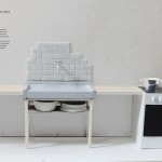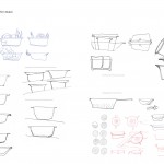 Für größere Mengen Wasser gibt es verschiedene Schüsseln, die differenzierte Einsatzmöglichkeiten in Volumen, Anzahl und Gebrauch zulassen – je nachdem, ob ich den Salat oder meinen Wollpulli wasche, im Stehen arbeite oder das “Waschbecken” auf den Küchentisch stelle, um im Sitzen die Kartoffeln zu waschen. Durch den in den Gefäßen integrierten Ablauf wird das Anheben und Ausgießen überflüssig. Der Abfluss in Form eines Siebes hält feste Elemente auf, die dann entnommen oder direkt über dem Mülleimer ausgekippt werden können.