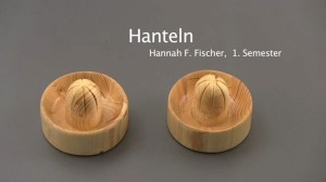 Hanteln aus Holz, die man möglichst auch als Push Up Griffe benutzen kann. Außerdem waren die Hanteln sehr individuell auf den eigenen Bedarf zu gestalten. Ferner sollte auch die subjektive Auffassung, eine eigene Interpretation und eventuell ein Kommentar zu dem Thema aufgenommen werden.