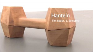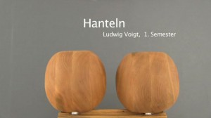Hanteln aus Holz, die man möglichst auch als Push Up Griffe benutzen kann. Außerdem waren die Hanteln sehr individuell auf den eigenen Bedarf zu gestalten. Ferner sollte auch die subjektive Auffassung, eine eigene Interpretation und eventuell ein Kommentar zu dem Thema aufgenommen werden.