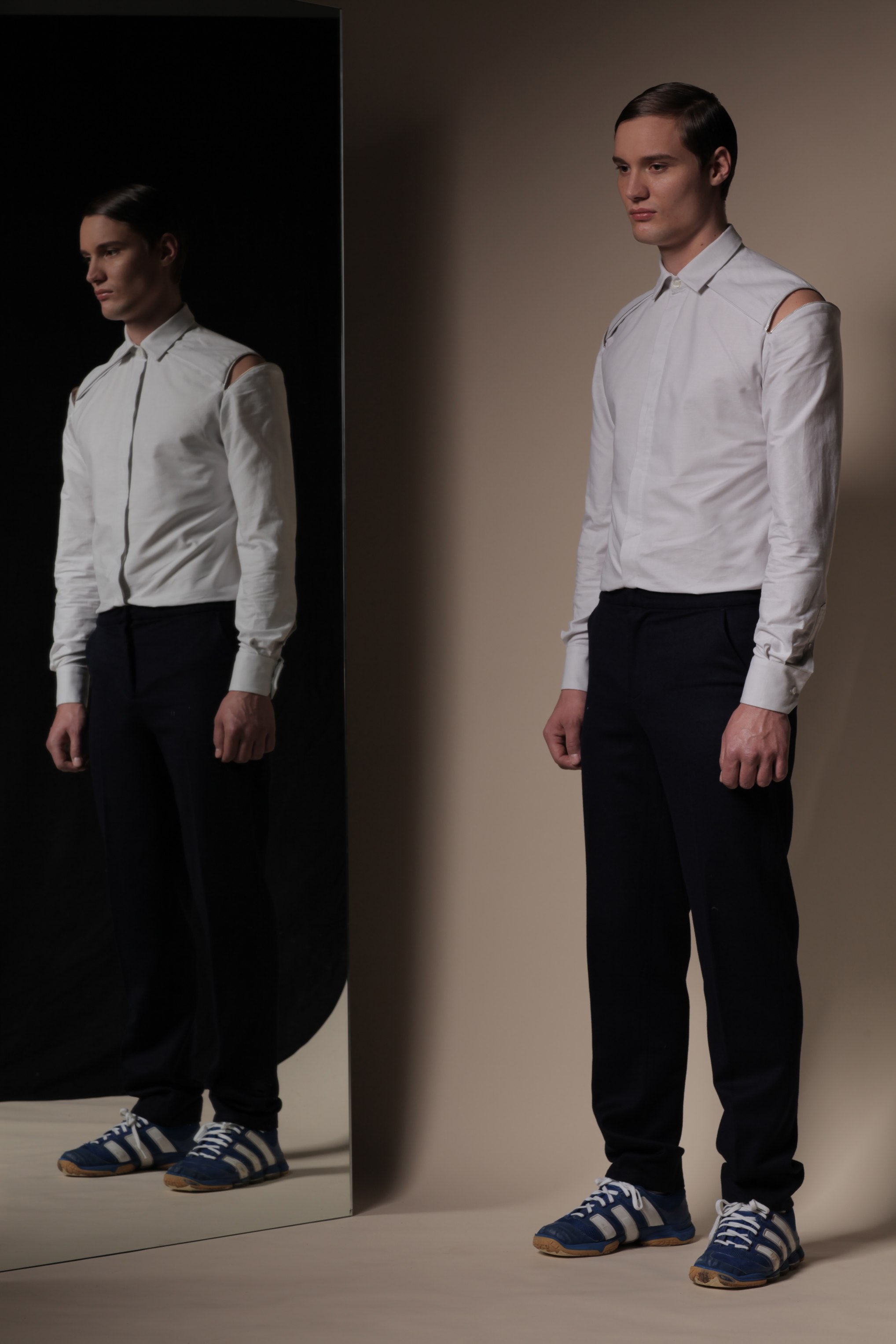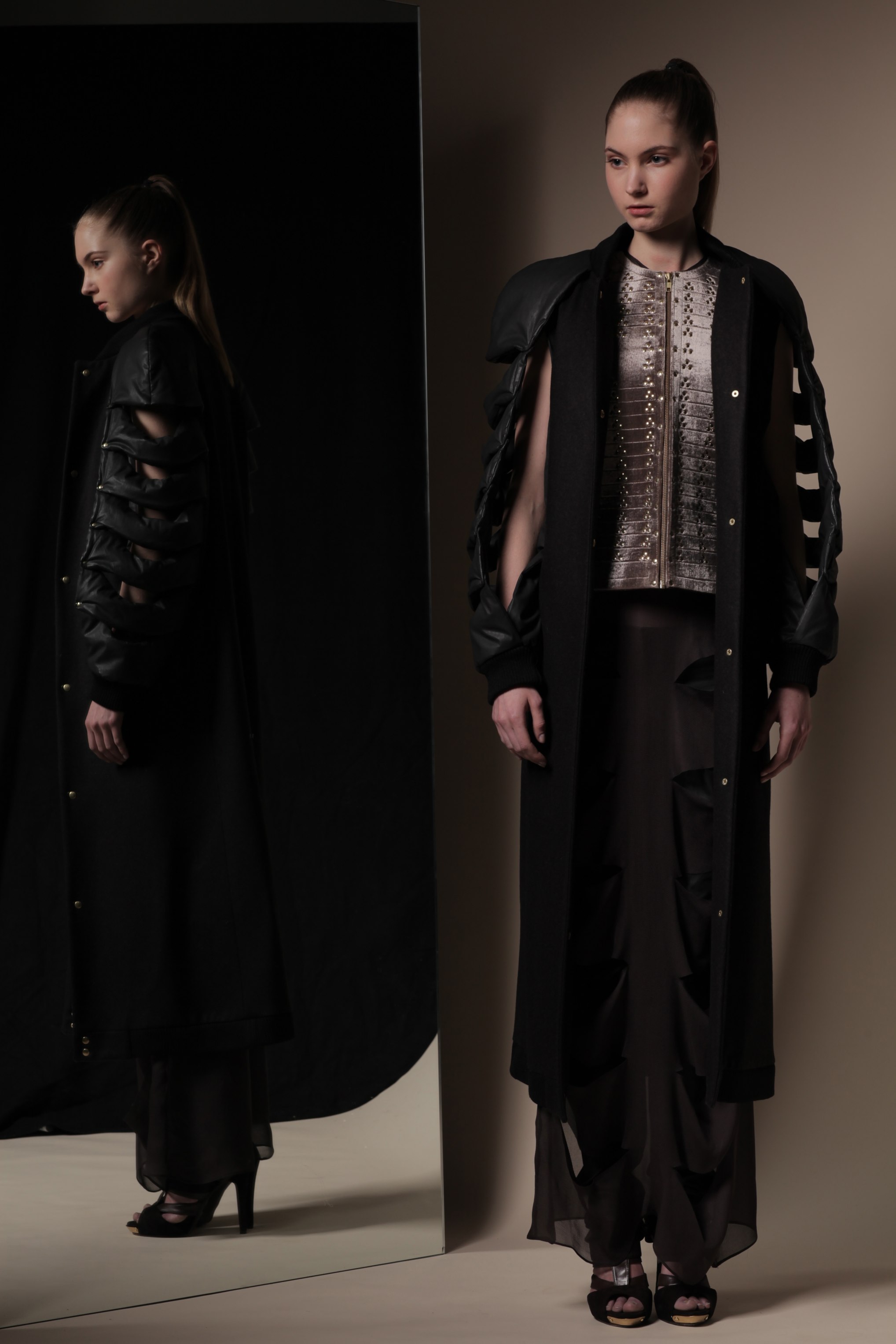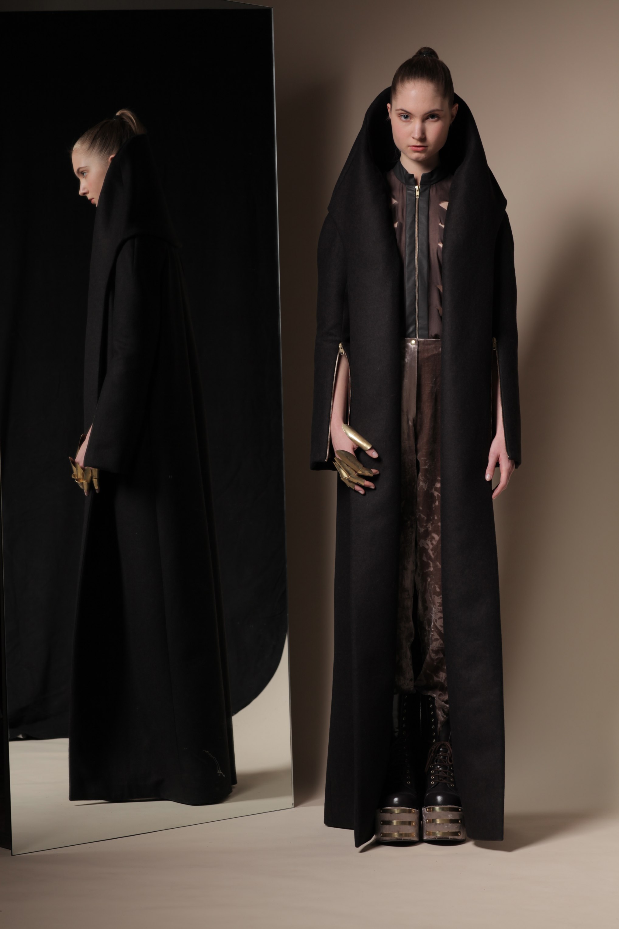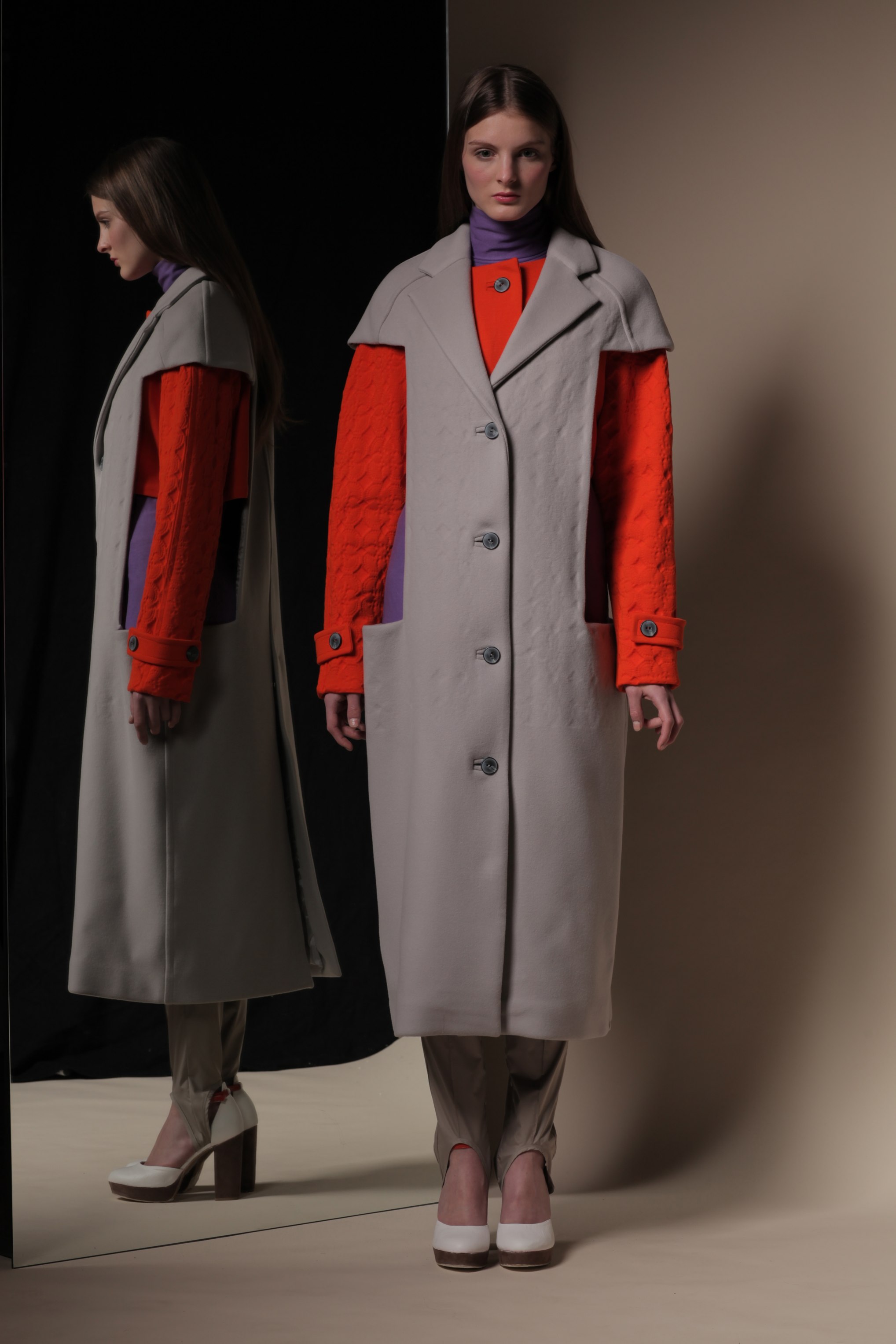 Die Aufgabe des Modedesigners ist es einen wegweisenden Ausdruck für die eigene Zeit zu suchen und sie dadurch mit zu gestalten.In der unaufhaltsamen Bewegung in Richtung Zukunft möchte der Gestalter idealweise die Zeitmessung verzögern, um den Ausdruck der Kollektion so langsam wie möglich als veraltet wirken zu lassen und so lange wie möglich ihren ursprünglichen Wert zu erhalten. Die Zeit, insbesondere die Zeitmessung im öffentlichen Raum steht im Fokus dieses Projekts. Zu Beginnhat jeder Studierende eine eigene Art der Zeitmessung ausgewählt, um so den subjektiven Takt für die eigene Kollektion festzulegen. Öffentlichkeit wurde in ihrer konventionellen Gemeinschaftlichkeit erforscht und Zeit als gesellschaftlicher Abgleich hinterfragt; Innen und Außen, öffentlich und privat, outerwear und homewear polarisierten die Themen des Kollektionsentwurfs.