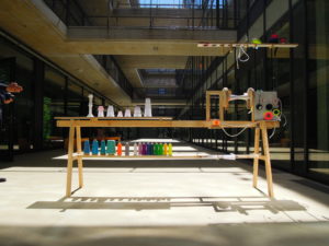 Prototyping in the Wild. Das weite Sortiment an Materialien und Halbzeugen bei Modulor bietet ein Paradies für parasitäre und partizipatorische Wertschöpfungsstrategien. Im Planet Modulor am Moritzplatz produzieren Studierende der UdK Berlin mit speziell konstruierten Maschinen und Apparaturen experimentelle Produkte, die vorort konfiguriert, getestet und erworben werden können.