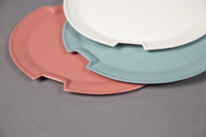 „Dreisam“ spielt mit der Vermischung dieser zwei sehr divergenten Produktwelten und führt sie zusammen. Aus der Andockstelle der Foldbackklammer erschließt sich die schlichte Ornamentik der Teller, ermöglicht die Aufhängung und macht sie zu einem Hybrid aus Dekoobjekt und Gebrauchsgegenstand. Das im Spritzgussverfahren hergestellte Verbindungselement erlaubt die Aneinanderkettung der einzelnen Teller und schafft in Kombination ein individuelles Wandbild, das jederzeit und simpel erweitert, verkleinert und angepasst werden kann.