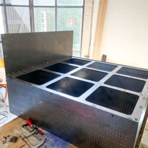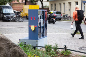 In meiner Bachelorarbeit habe ich einen modularen Tauschort für Nachbarschaften entwickelt. Er ist mobil, witterungsfest und vandalismussicher. Durch das Lochraster lassen sich viele zusätzliche Komponenten an den Tauschort anbringen, – je nachdem, was die jeweilige Community braucht.