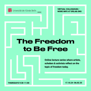 Additionally: This semester, in co-ordination with the UdK Studium Generale Office, the Virtual Colloquium ‚The Freedom to Be Free‘ can also be taken as a Studium Generale course, instead of Designmethoden.