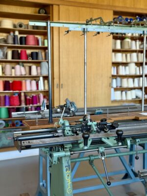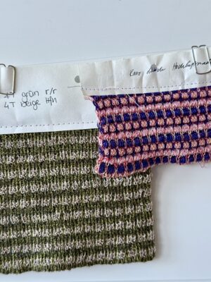 In dem Kurs Einführung Stricktechnologie erlernen die Teilnehmenden die Grundlagen des Strickens, sowohl theoretisch, als auch in praktischer Umsetzung an industriellen Handstrickmaschinen. Jede*r Studierende arbeitet an einem eigenen Materialarchiv und füllt es mit Strickproben der Grundbindungen und Bindungskombinationen. Es wird an Maschinen unterschiedlicher Feinheiten gearbeitet, sodass vielseitige Erfahrungen gesammelt werden können, welche technologischen und ästhetischen Potentiale möglich sind. Es ist außerdem möglich, das erlernte Wissen im Rahmen eines Entwurfsprojekts anzuwenden und ein gestricktes Kleidungsstück zu entwickeln.
