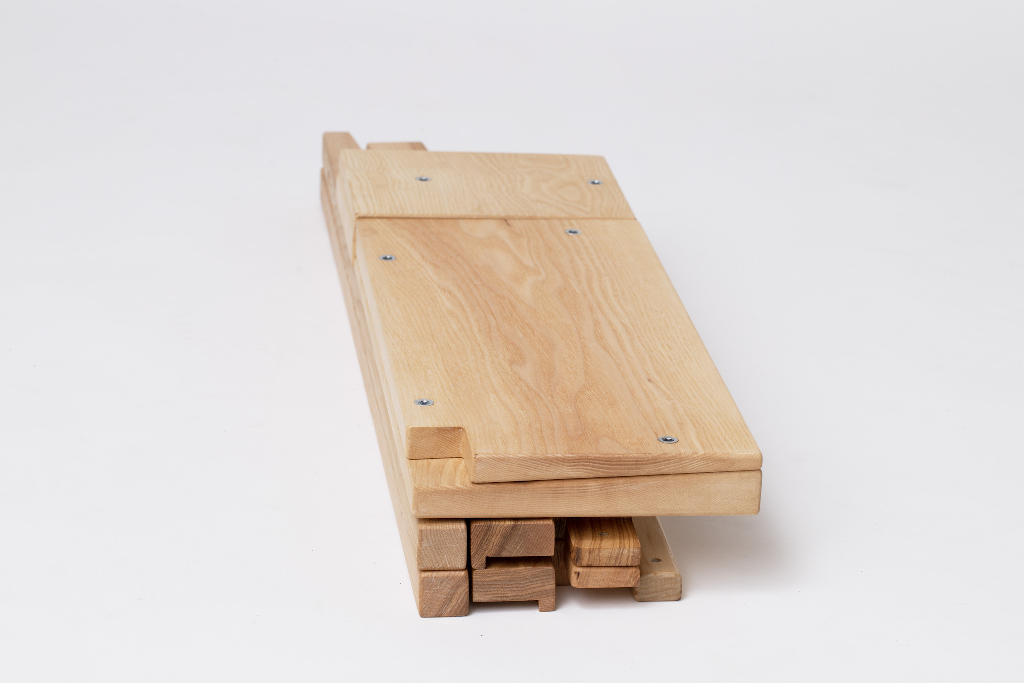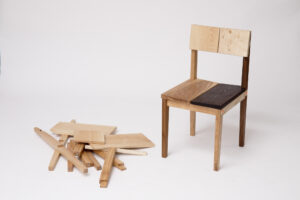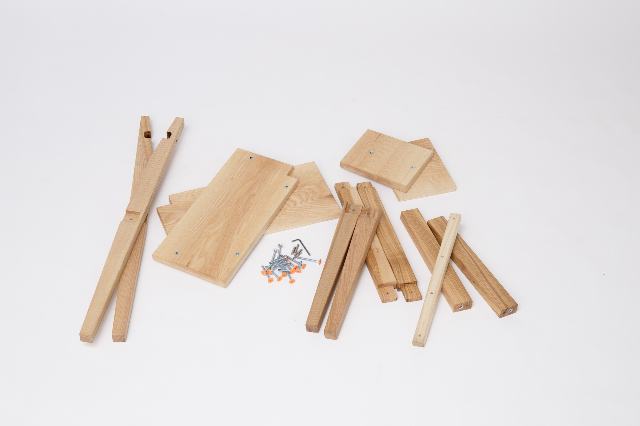 MEA-Chair is made entirely of solid wood and is therefore easy to repair. Due to detachable screw connections, it can be quickly disassembled and completely refurbished within less than 60 minutes. Irreparable individual parts can be replaced while all others stay in use. Replacing individual parts has in conclusion that the chair’s appearance changes over the years. Every tree trunk looks different and due to climatic changes, we do not know which tree species will settle in the future.