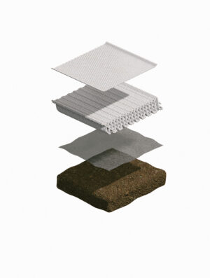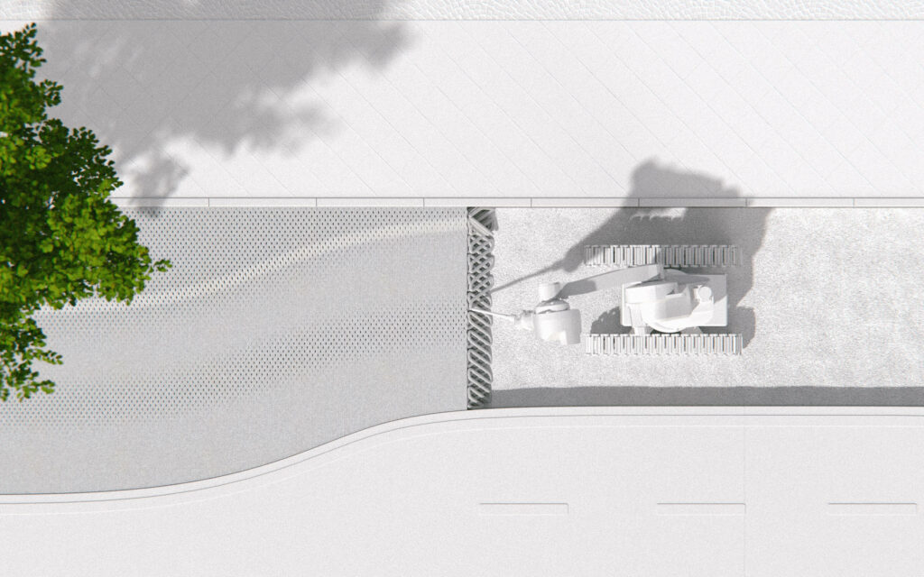 Perforating the City therefore calls for water-sensitive design of urban cycle paths. In response to increasing weather extremes, the systematic approach designs permeable traffic areas that infiltrate, distribute, store and evaporate rainwater. The surface structure is interpreted as an architected material consisting of a flat surface structure with parametric perforations and a porous volume structure with adaptive water distribution. Autonomous 3D printing robots are used to continuously print the cycle path from mineral materials on site. The project responds to the increasing complexity of the ecosystems around us and understands urban space design as an integrative process in which additive manufacturing enables a symbiotic integration of urban flora, underground drainage, roadway boundaries, public furniture and the visual appearance as a whole.