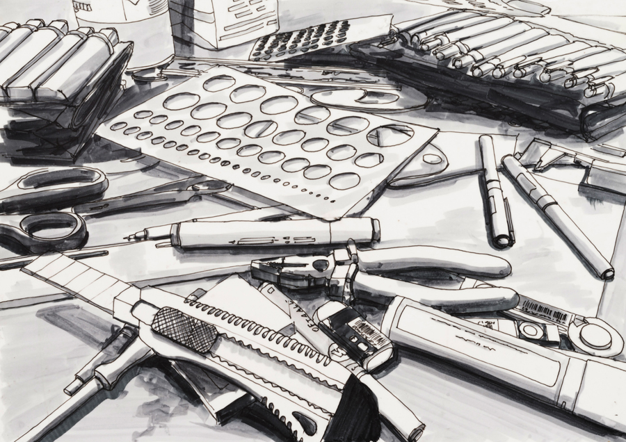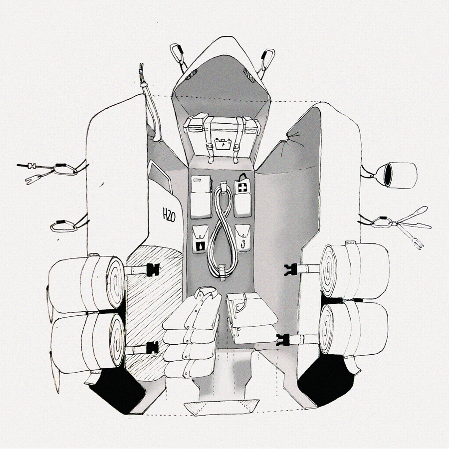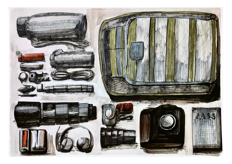 Bag of esssentials – zeichnerisch haben die Studierenden ihren Koffer für eine Reise auf