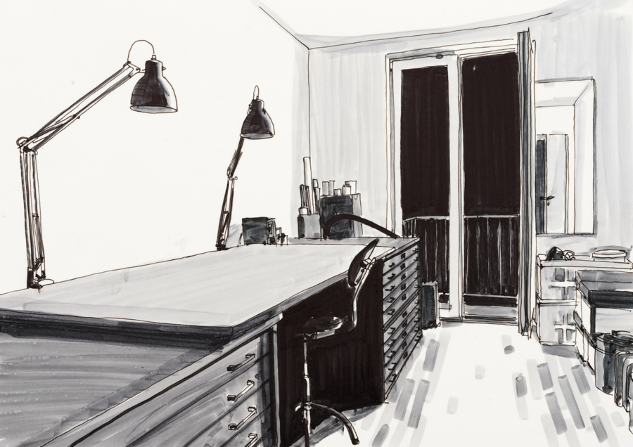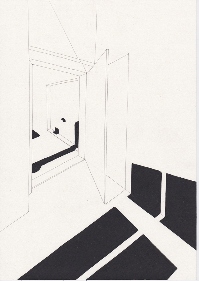 Corners of isolation – eine Serie von Zeichnungen, welche die anfängliche Isolation zu