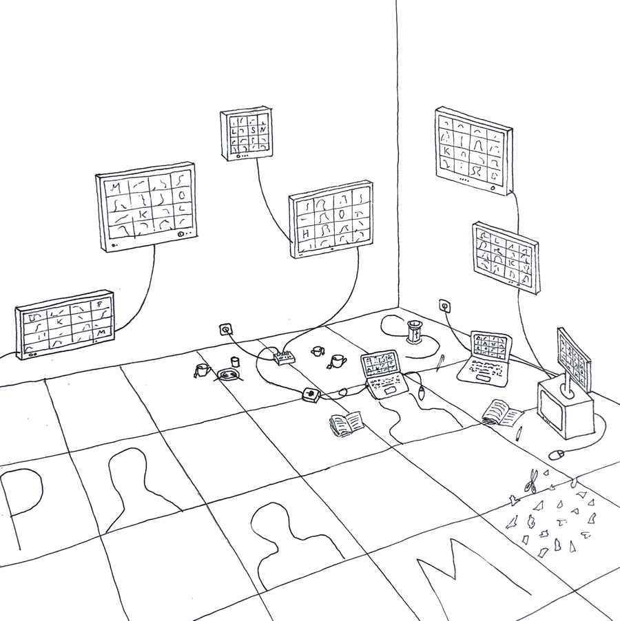 eine Reihe von miteinander im Kontext stehenden Zeichnungen in einer bestimmten