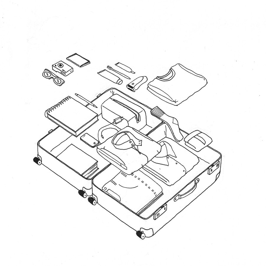 Bag of esssentials – zeichnerisch haben die Studierenden ihren Koffer für eine Reise auf