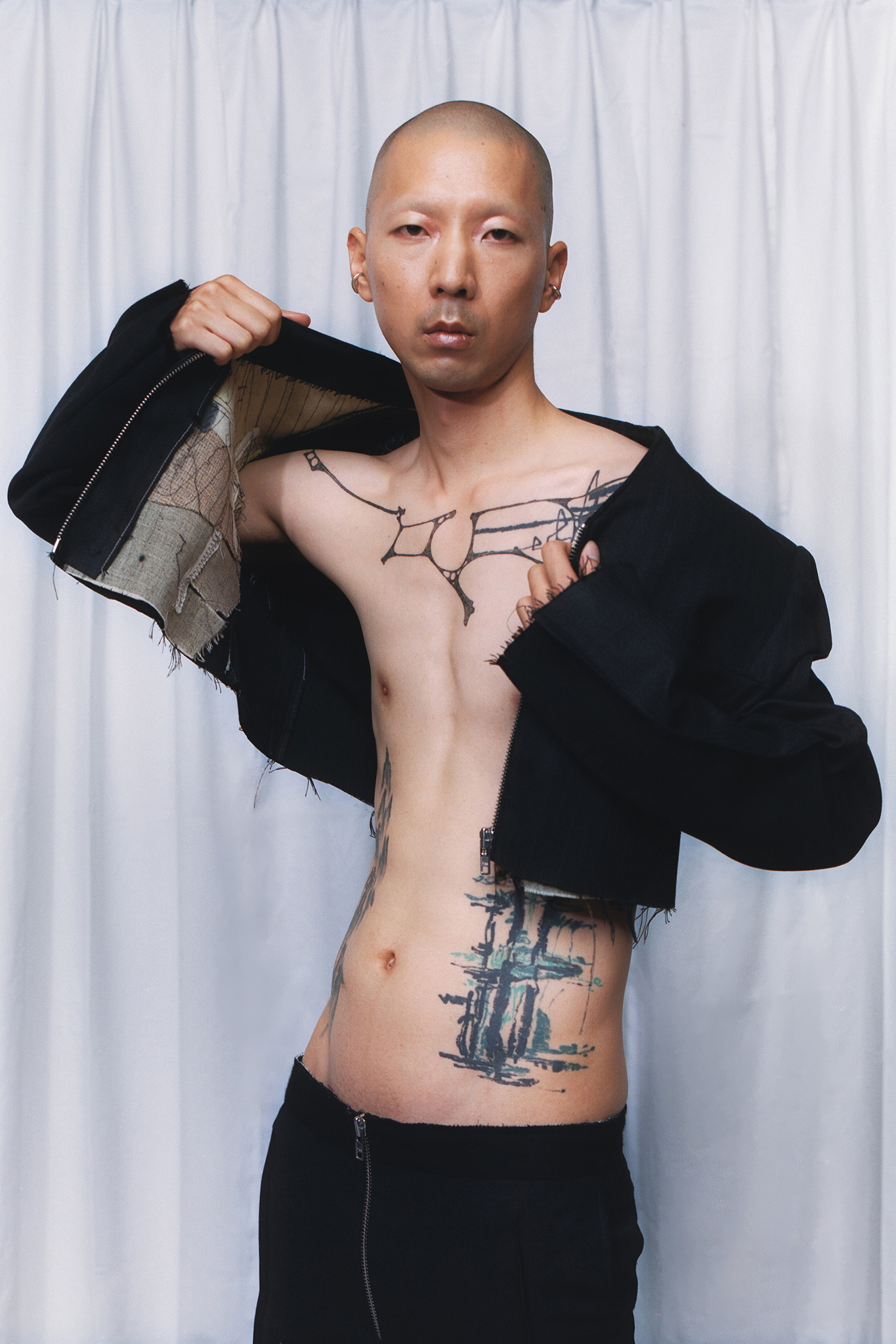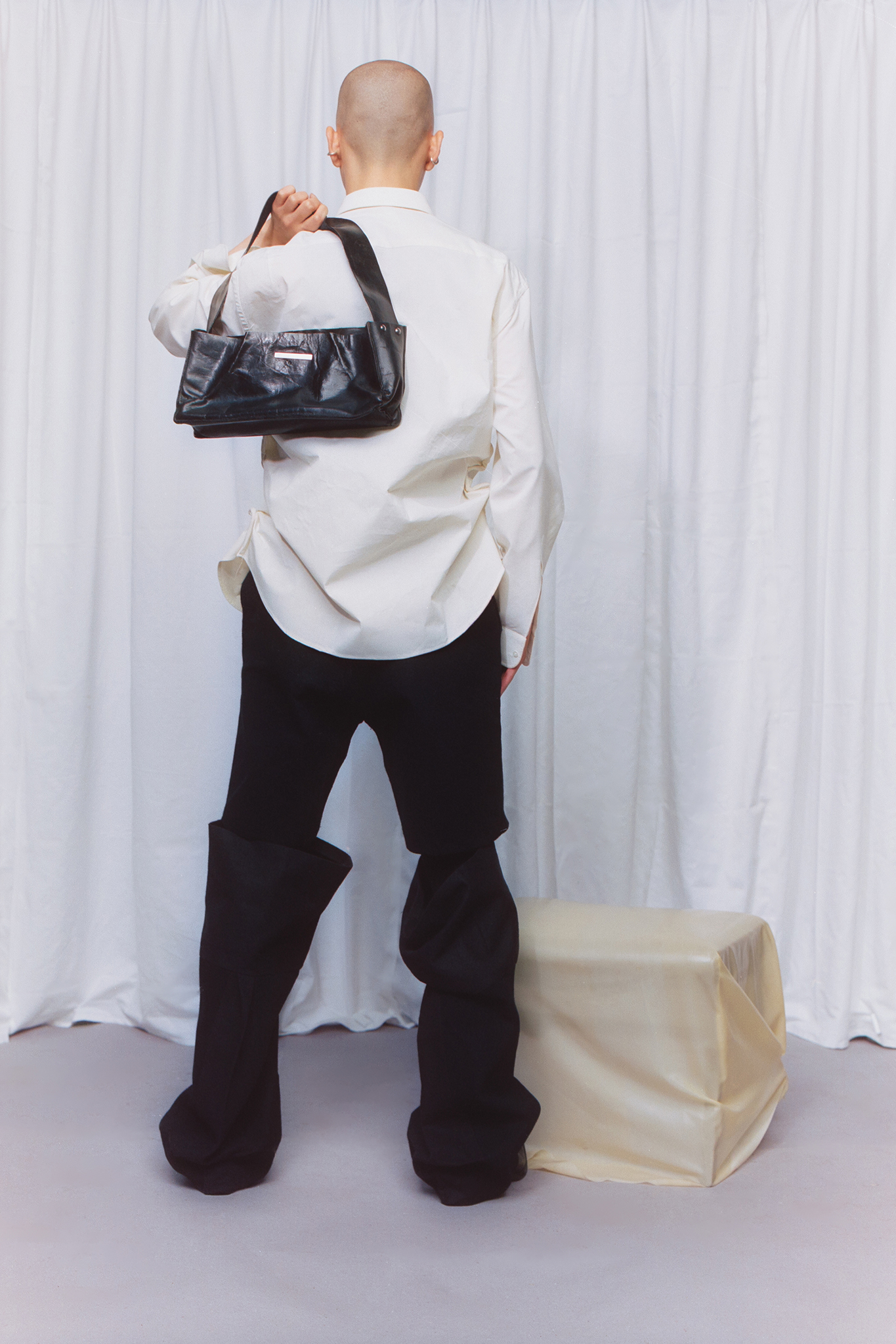 „RETAILORING“ disrupts the traditional way of garment construction and the necessity of novelty. Through individually applied techniques all designs are upcycled, redefi ned and reconstructed from pre-owned garments. On many levels, garments are a carrier for values, mostly of sociological nature. Through their evolution, they become a symbol that is connected to certain characteristics. Therefore garments have an attachment to the past, as they are inherent of memories that are visible in their construction. Like humans, garments can’t let go of their past, they keep their marks and signs of wear of the owner who wore and lived in them.The applied techniques involve darts, incisions and inserts which create an