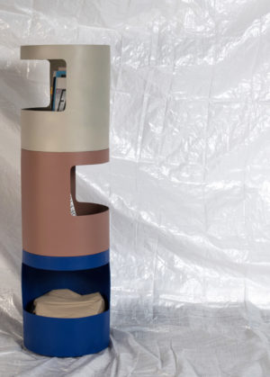 Stosh is a shelf which can be enlarged by single elements to any hight you wish. What you can´t see, the single modules can easily be grabbed through the opening and filled with content for example books and so it can also be used as a stool. With a