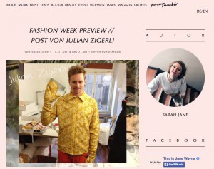 Johanna Braun talking about her Mastercollection in Kaltblut Magazine